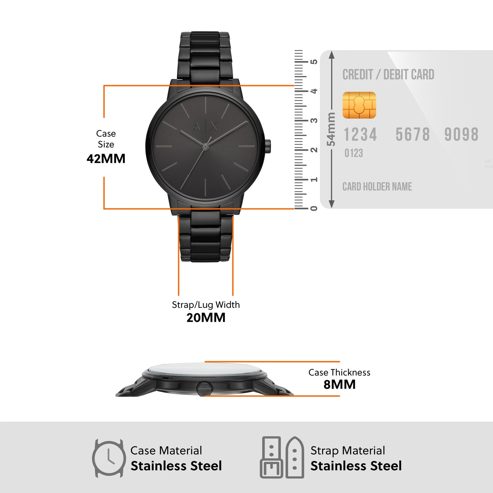 ARMANI EXCHANGE CAYDE BLACK DIAL STAINLESS STEEL WATCH AX2701 (M)