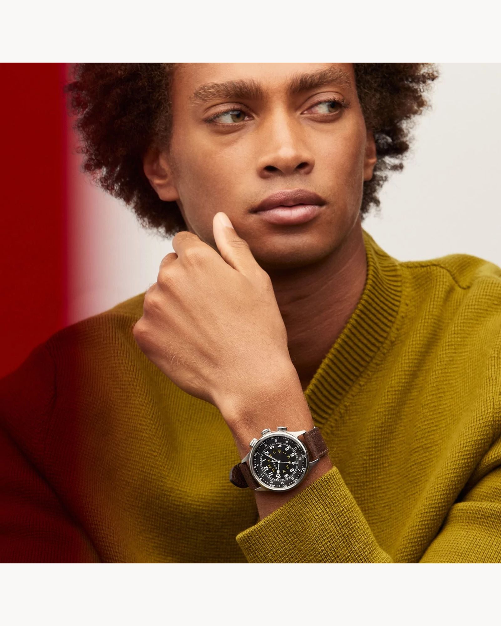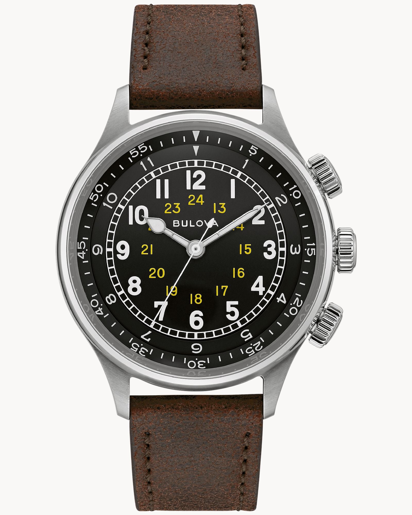 The Bulova A-15 Pilot Automatic 96A245 is a tribute to aviation history, combining practical features with a classic military design and modern automatic movement for durable, precise performance.