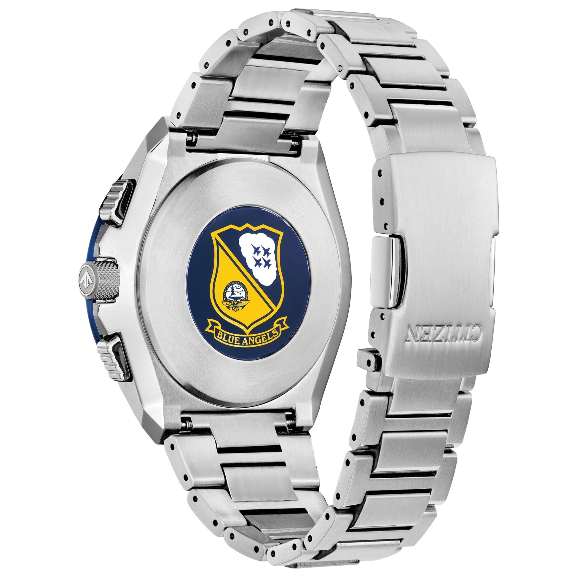 | Clasp / Caseback | Fold‑over clasp with hidden push‑buttons; Blue Angels engraved case back |