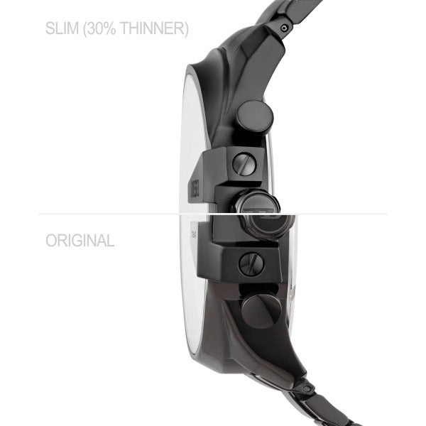 The Diesel DZ4676 Mega Chief is a powerful, monochromatic statement in gunmetal gray. This model features Diesel's signature oversized **51mm case** and a seamless bracelet, all treated with a sophisticated **gunmetal** ion plating. The matching **gray dial** enhances the stealth aesthetic while the highly functional quartz chronograph sub-dials provide precision. Combining high durability, 5 BAR water resistance, and an aggressive urban look, the DZ4676 is designed for those who appreciate understated power.