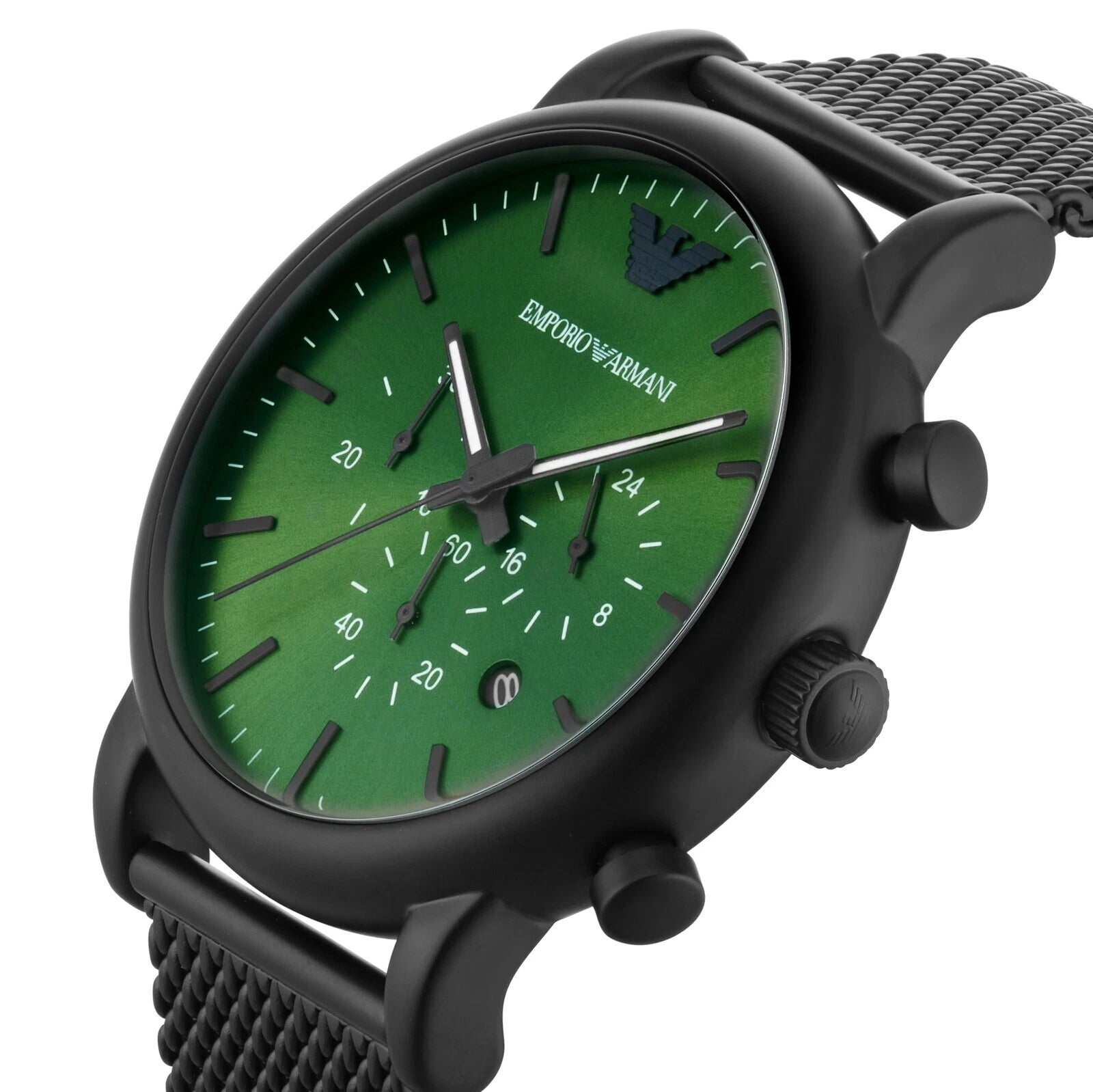EMPORIO ARMANI BLACK AND GREEN STEEL CHRONOGRAPH WATCH
