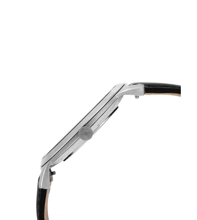This 44mm Fossil Minimalist watch combines sleek design with modern simplicity. The black satin dial features slim stick indices and a three-hand movement for effortless timekeeping. A supple black leather strap completes the look, making it a versatile accessory for both casual and formal outfits.