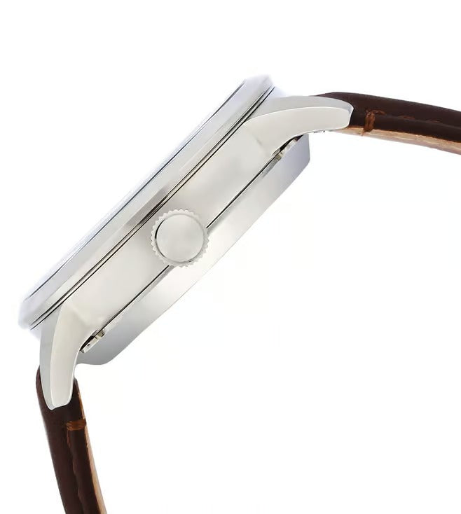 The Fossil Townsman ME3061 perfectly blends classic sophistication with modern flair. Featuring a bold 45 mm silver-tone stainless steel case, see-through automatic movement, and a genuine brown leather strap, this watch is designed for men who appreciate both style and functionality.